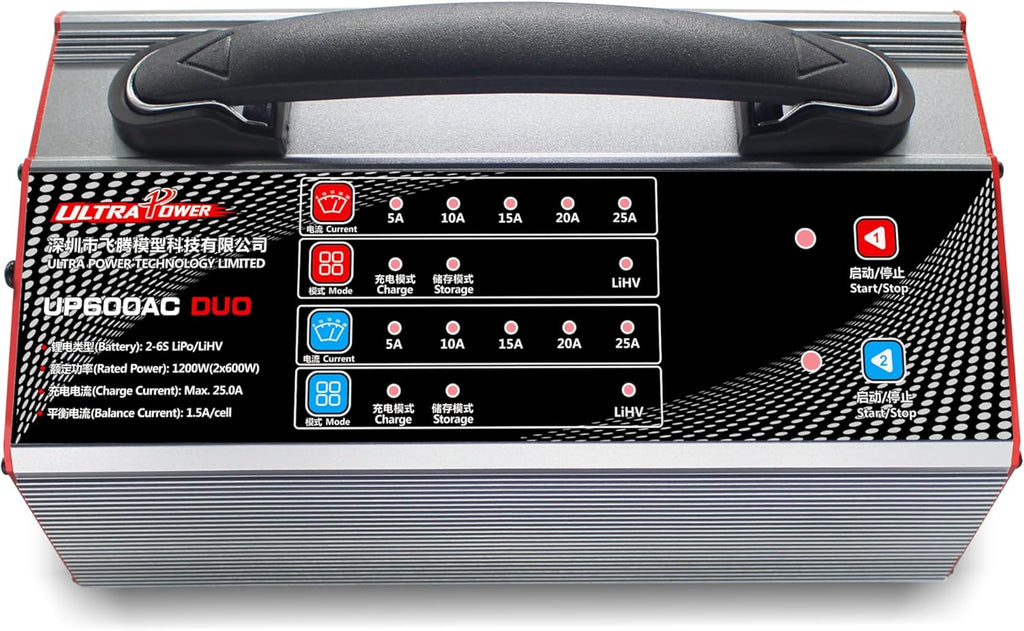 - Paketet innehåller laddningsalgoritmen för de vanligaste batterikemierna: LiPo, Li-Ion, LiHV, LiFe, NiMH, NiCD och Pb (Lead Acid).